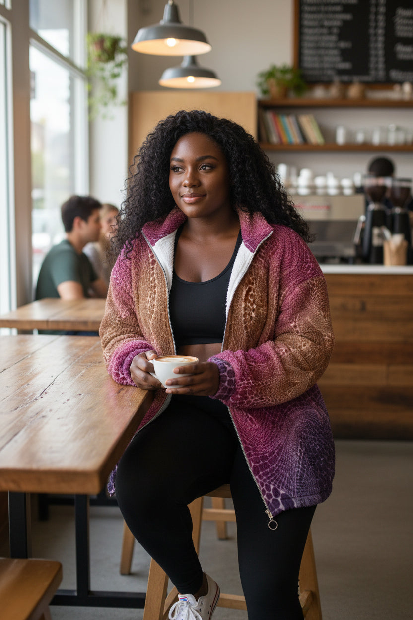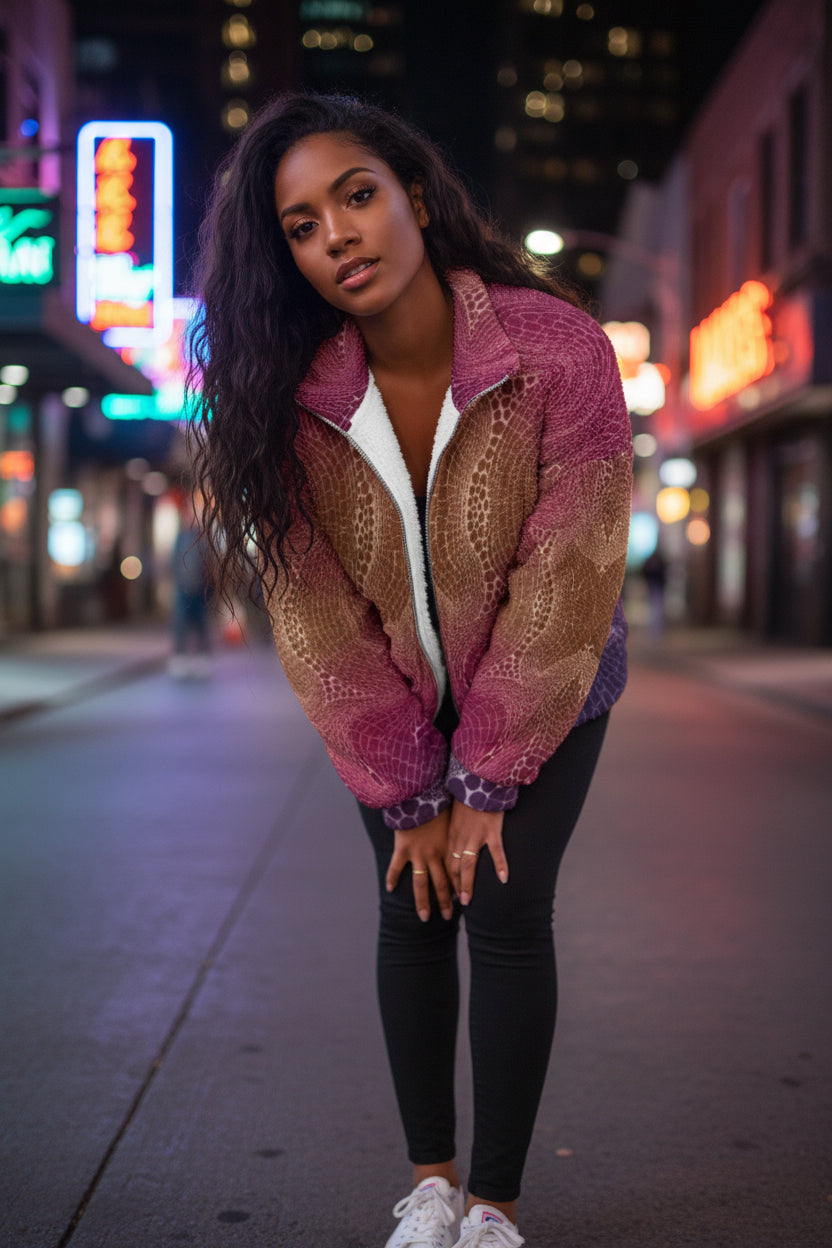 Signs of Life Sunset All-Over Print Unisex Borg Fleece Stand-up Collar Coat With Zipper Closure(Plus Size)