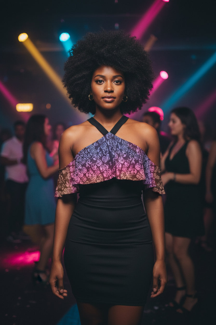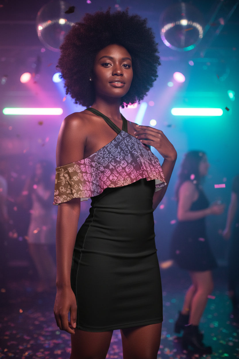 Faces Sunset All-Over Print Women's Cold Shoulder Cami Dress With Ruffle