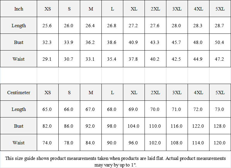 This size guide shows product measurements taken when products are laid flat. Actual product measurements may vary by up to 1".