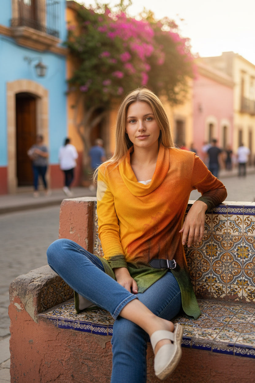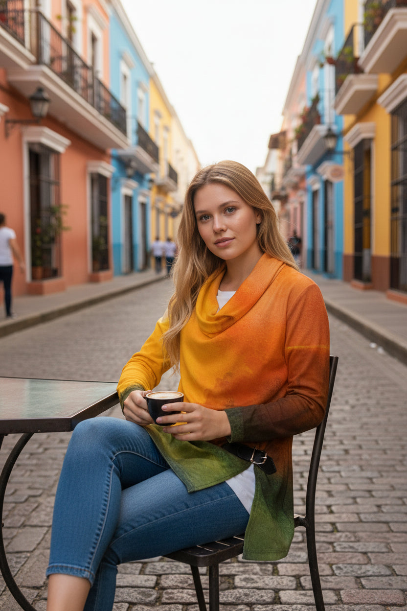 Autumn's Heart All-Over Print Women's Draped Long Sleeve Top
