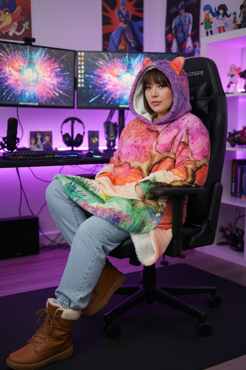 A New Dawn All-Over Print Women's Flannel Hoodie with Cat Ears