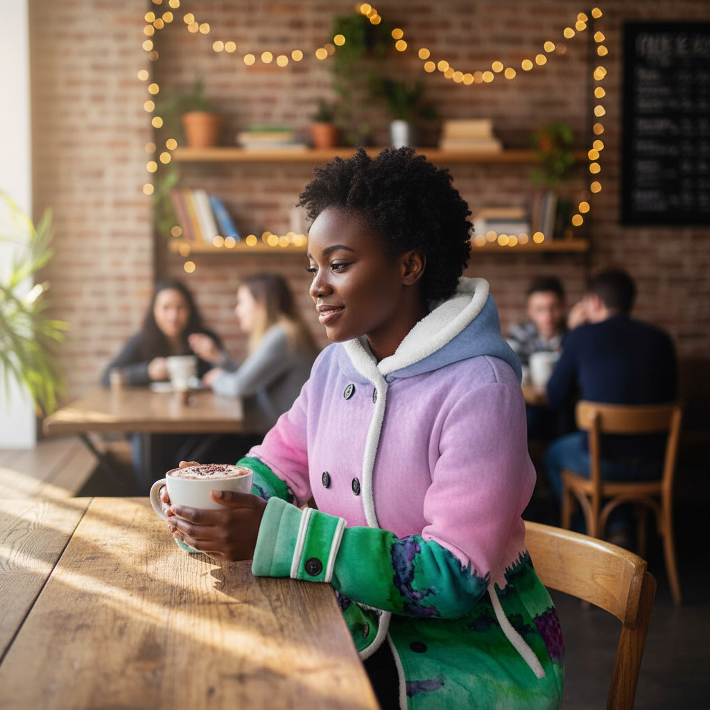 This stylish hooded jacket is the perfect way to stay warm and stylish. It features a classic double-breasted design with contrasting black buttons for a timeless and elegant look. Lined with soft, cozy fleece, it provides exceptional warmth and comfort, even in cold weather. It also features a cozy fleece-lined hood for added warmth and protection from the elements. This versatile piece is perfect for everything from daily commutes to casual outings. Its mid-length cut flatters all body types.