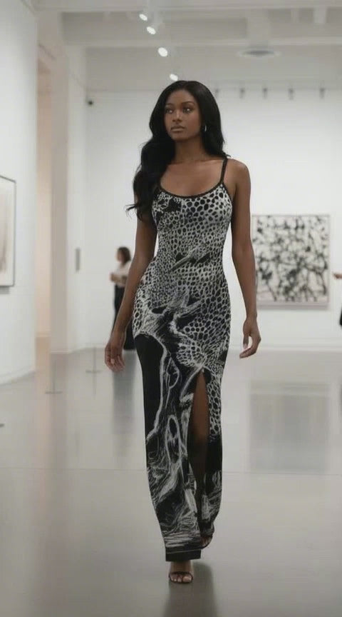 The Fallen Tree All-Over Print Women's Long Dress with Slit