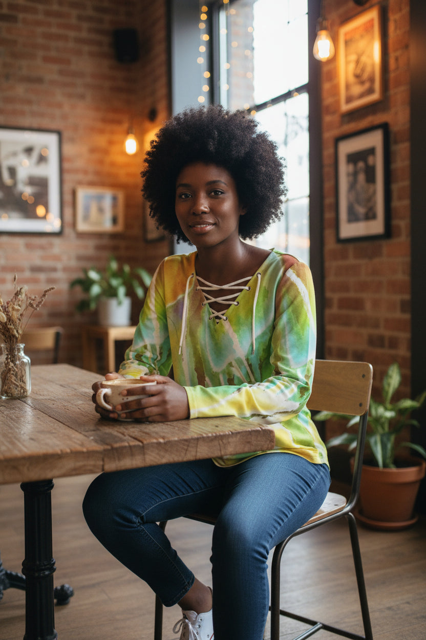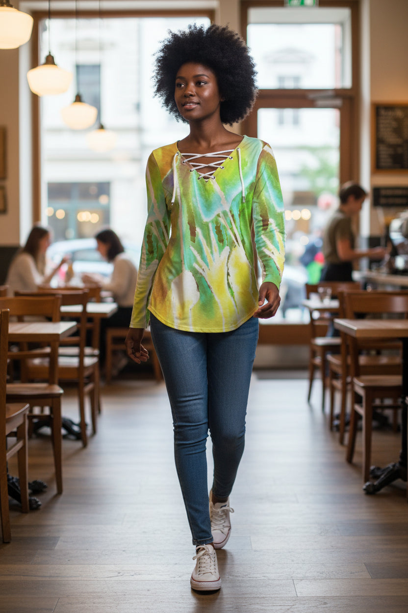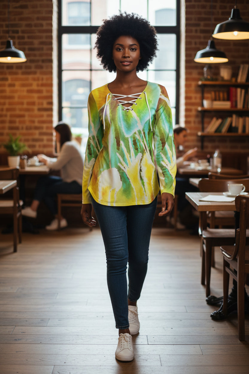 Heart Strings All-Over Print Women's Long Sleeve Neckline Tie Sweatshirt