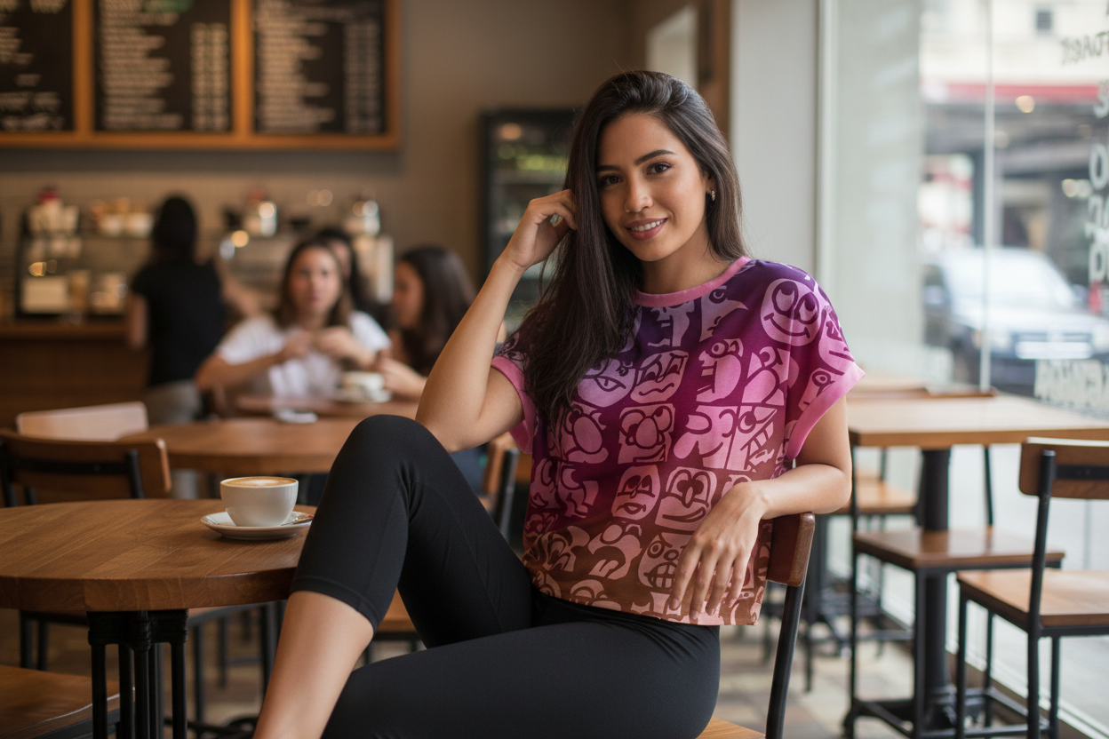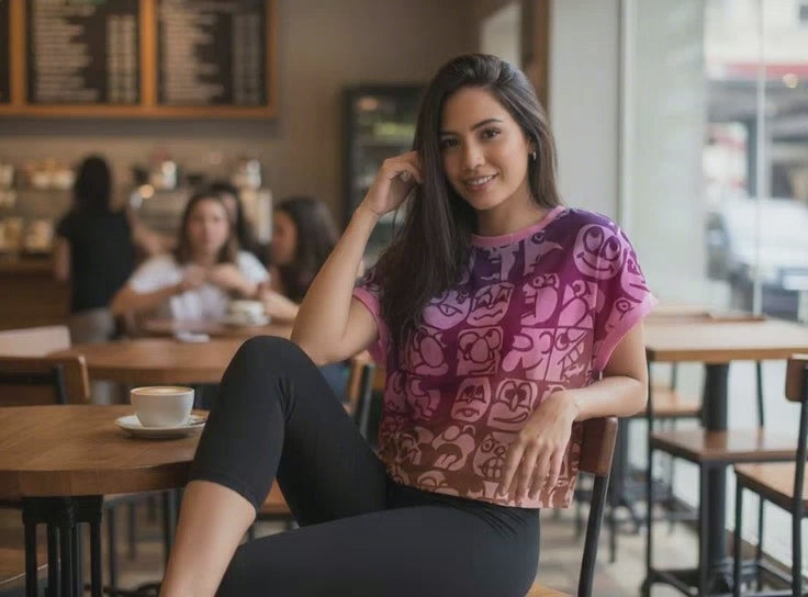 Faces All-Over Print Women's Open-Back Crossover Workout Tee
