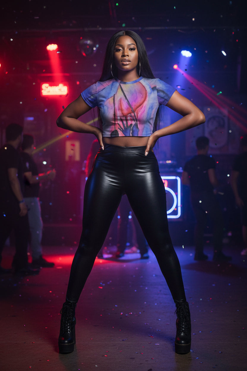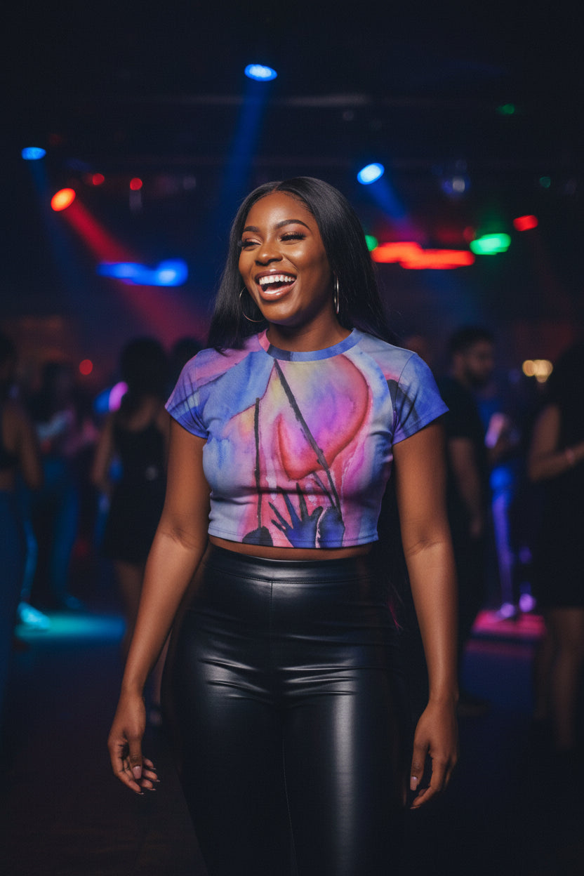Heart Strings All-Over Print Women's Raglan Cropped T-shirt