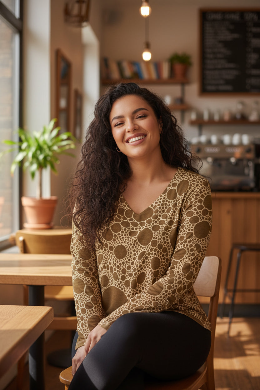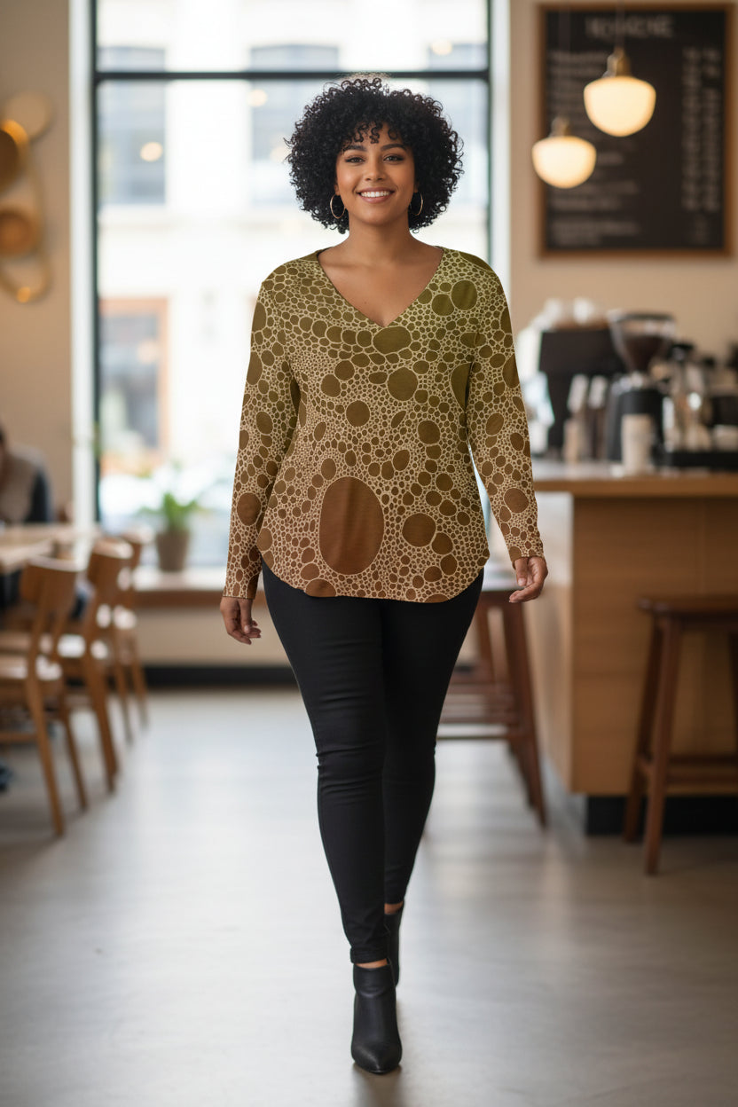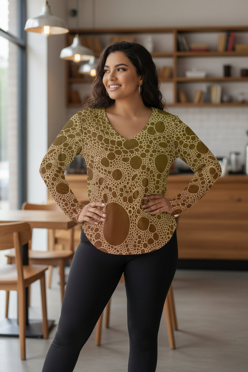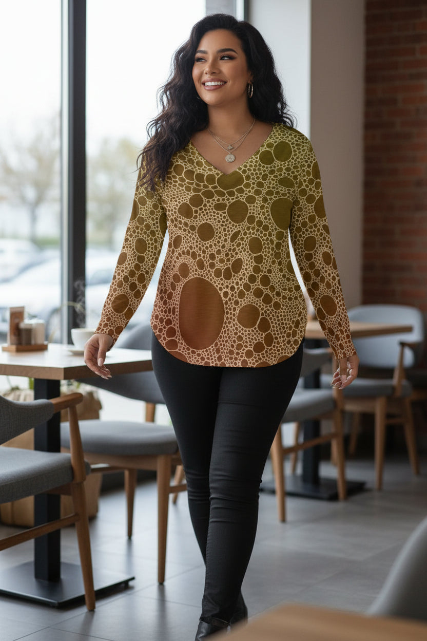 Lost in Circles Sunset All-Over Print Women's V-neck T-shirt With Curved Hem(Plus Size)