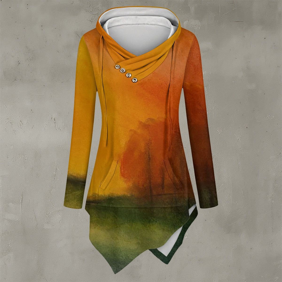 Autumn has Come All-Over Print Women's Asymmetric Hem Hoodie