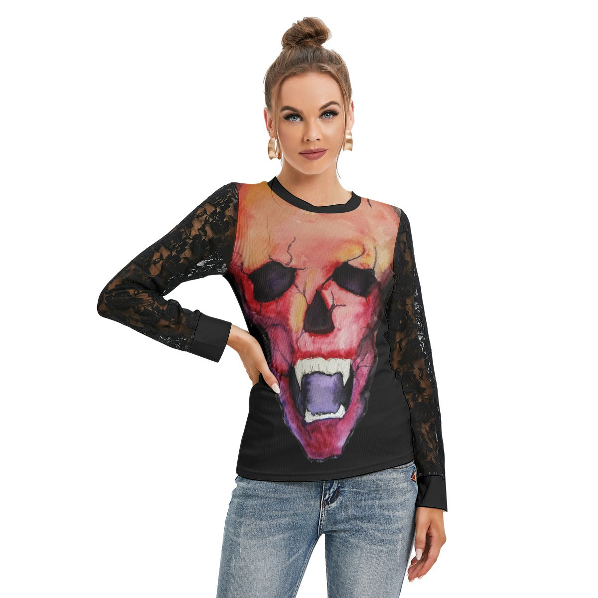 Blood Skull All-Over Print Women's T-shirt And Sleeve With Black Lace