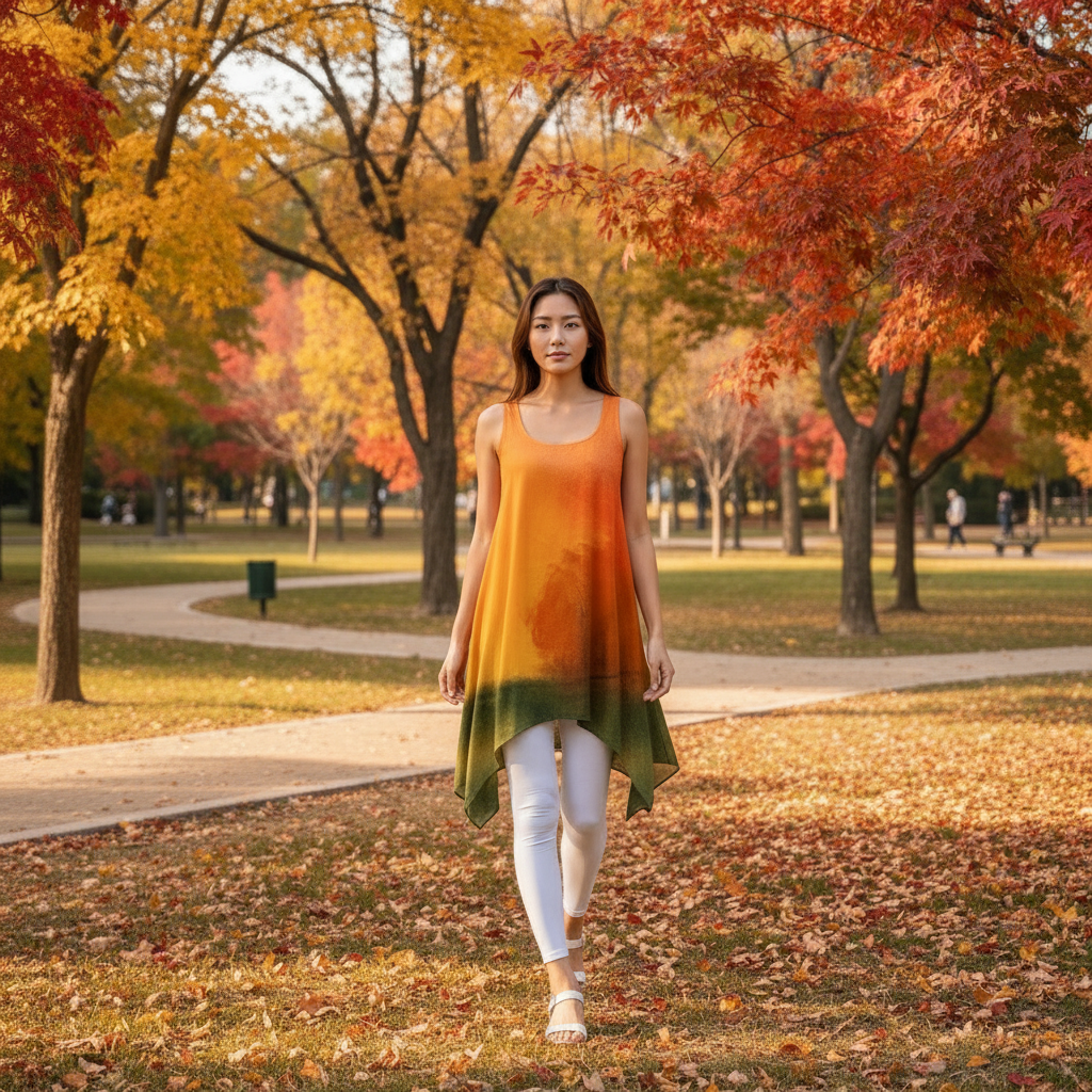 This sleeveless tank dress combines laid-back comfort with subtle elegance. Designed in a flowy high-low hem silhouette, it features a classic scoop neckline and a minimalist leaf print near the hem. The lightweight, cotton-feel polyester fabric offers a soft touch and breathable wear, making it perfect for beach days, vacations, or relaxed weekend looks.