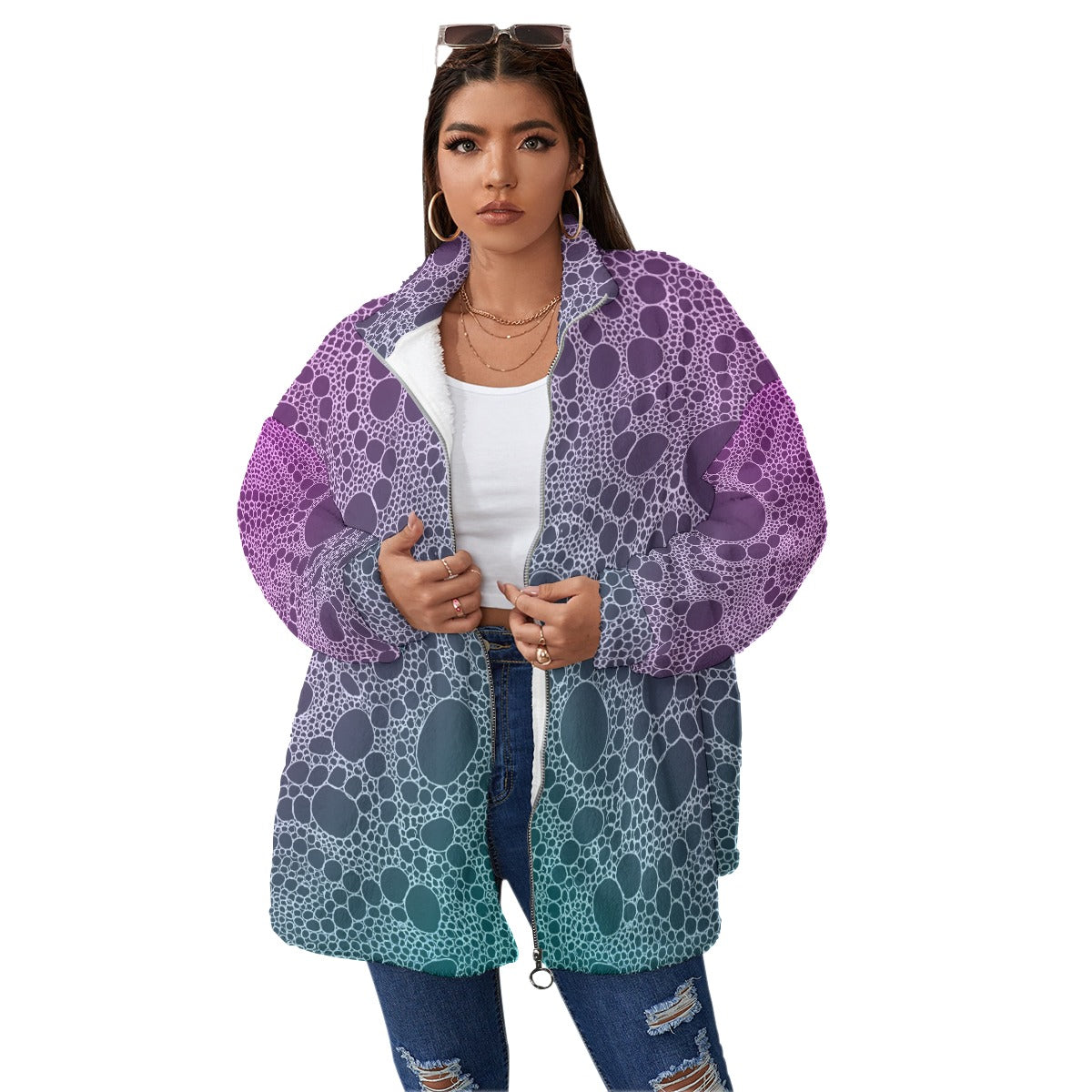 Lost in Circles Borg Fleece Stand-up Collar Coat With Zipper Closure(Plus Size)