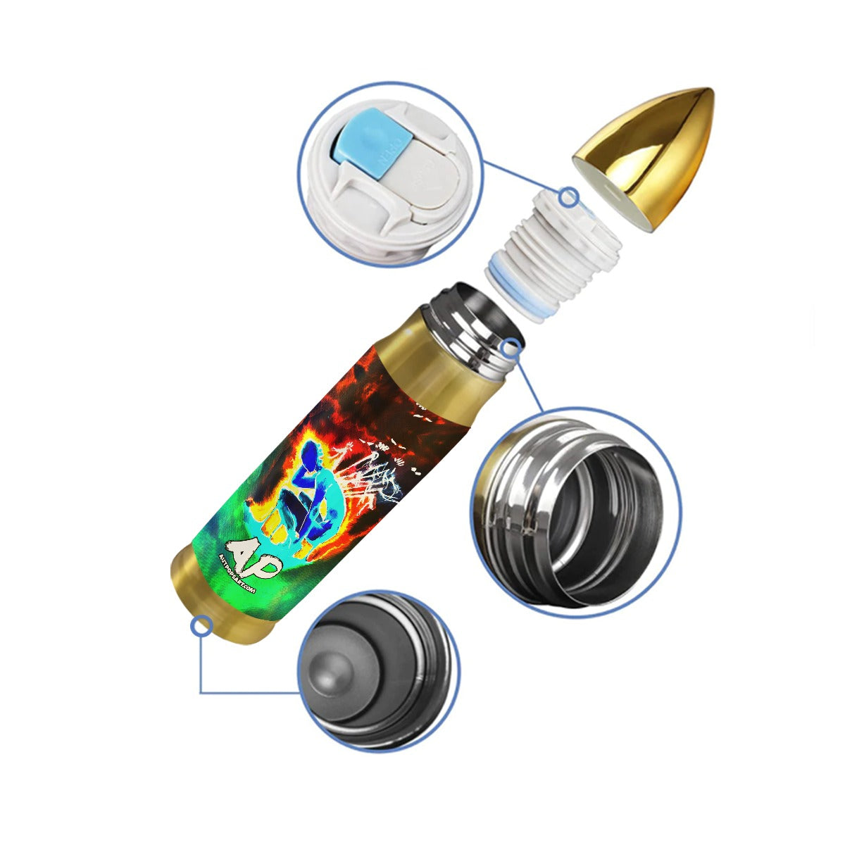 - Custom bottle body print. For custom areas please refer to yoycol mockup generator for details.